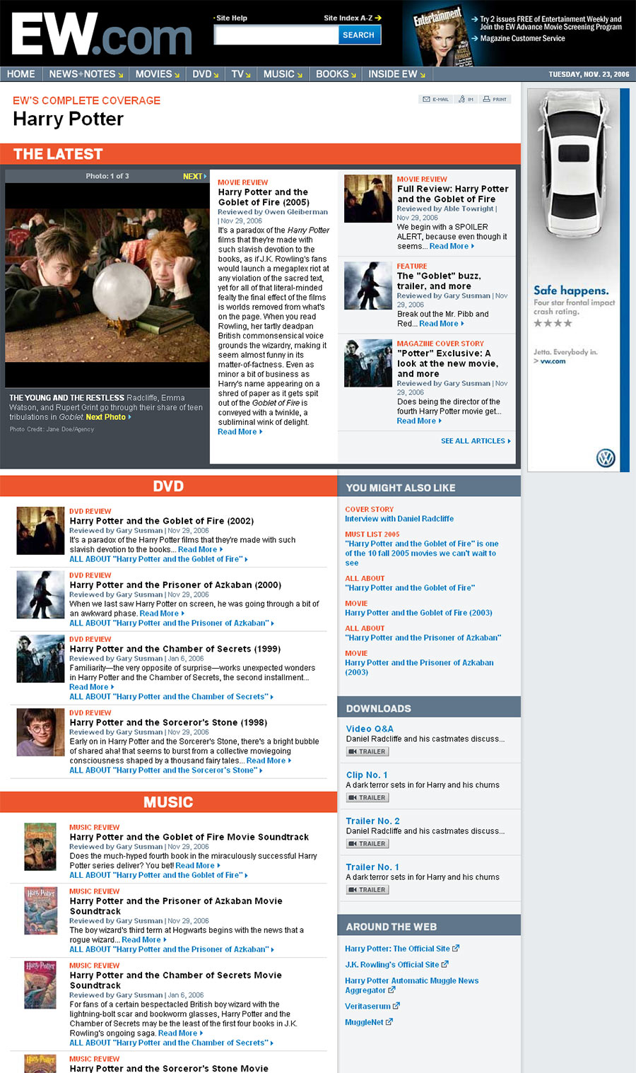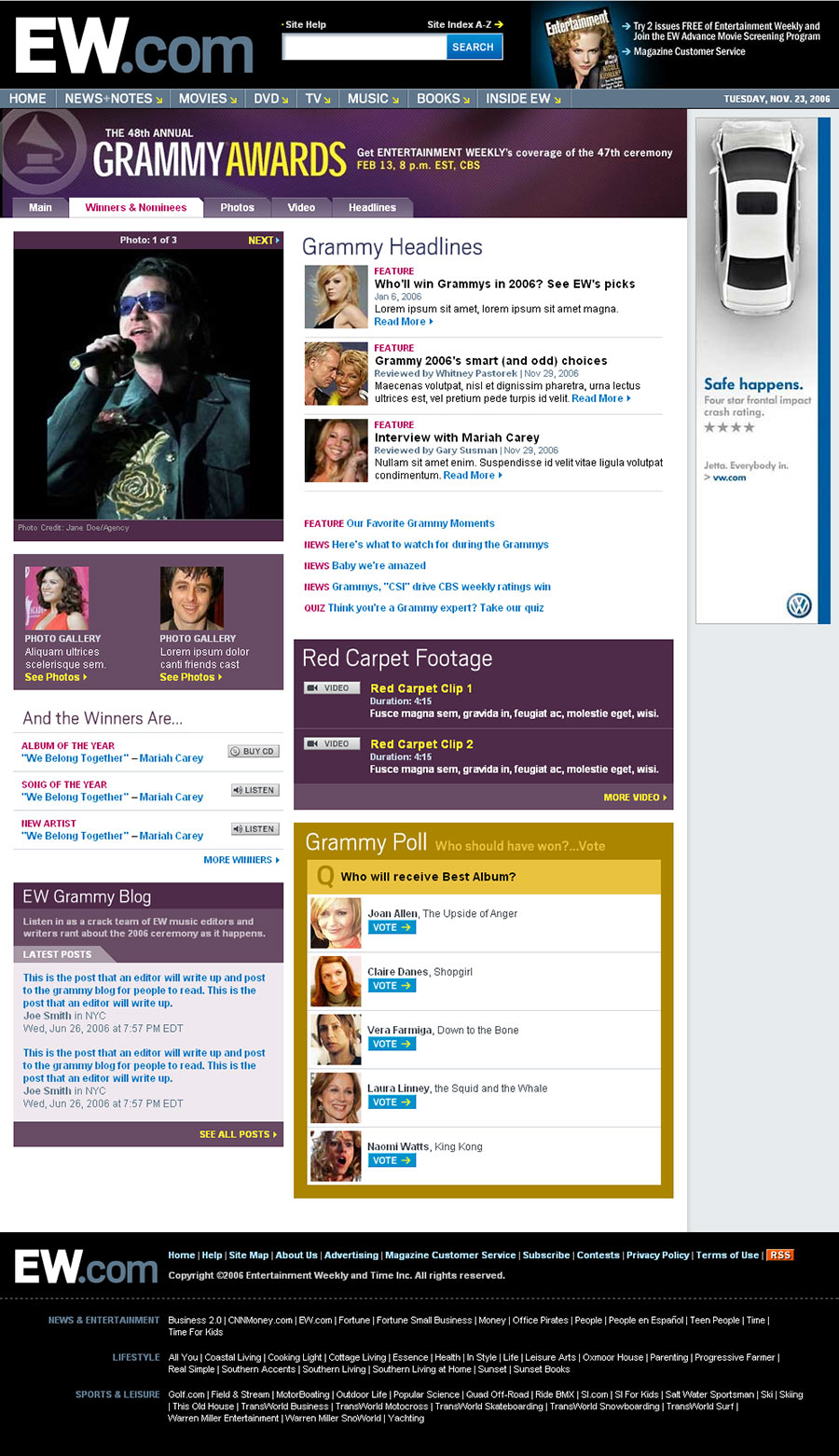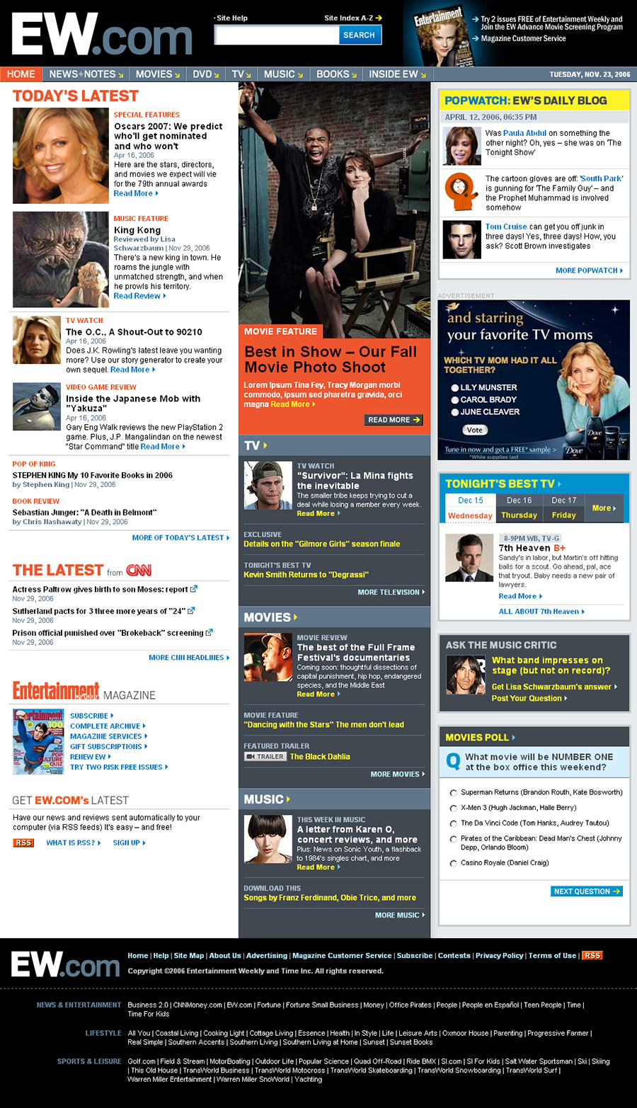 Entertainment Weekly was a weekly magazine covering a wide variety of entertainment news. (It moved to a digital only format in 2022.) After completing a homepage redesign, the site was completely overhauled the following year with updated branding and using a new content management system.