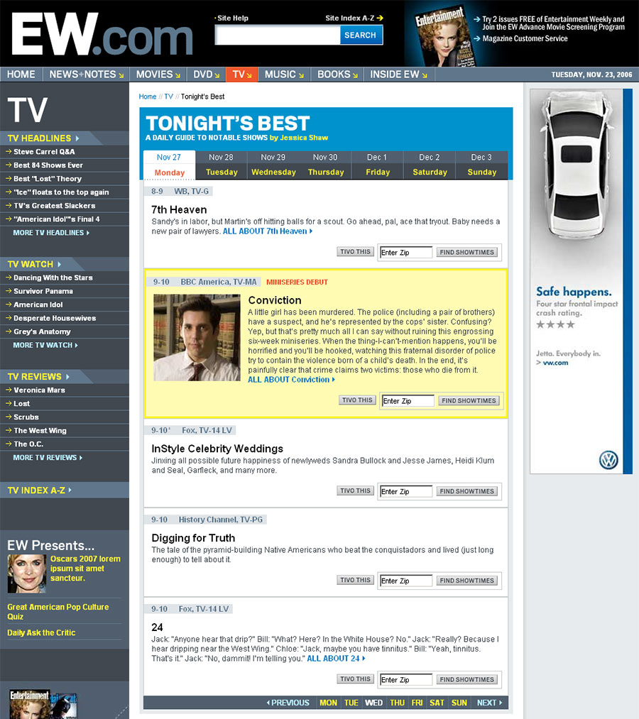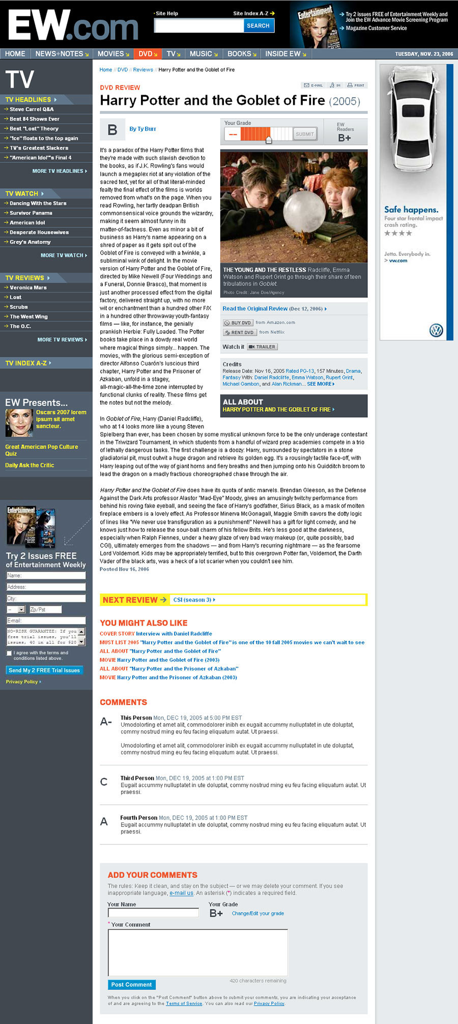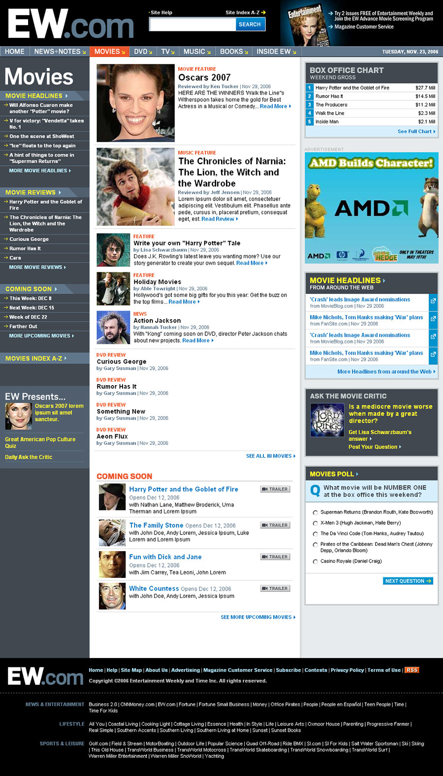 Entertainment Weekly was a weekly magazine covering a wide variety of entertainment news. (It moved to a digital only format in 2022.) After completing a homepage redesign, the site was completely overhauled the following year with updated branding and using a new content management system.